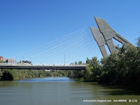 Sigue el rio danzando bajo el barco y llegamos hasta el Puente de Isabel la Católica, aunque hoy en dia todos lo vamos a conocer por el Puente del Milenio, por esa Cúpula ultramoderna y adalid del futuro en la ciudad...en fin.